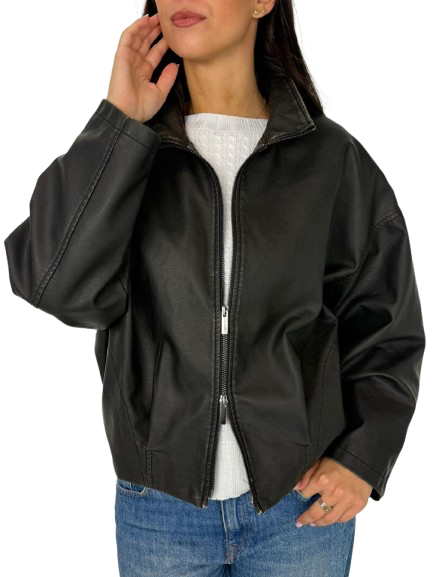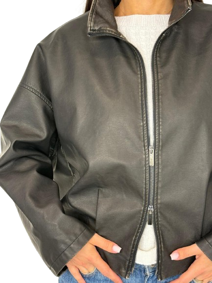GIACCA DONNA IN SIMIL-PELLE GRIGIO SCURO