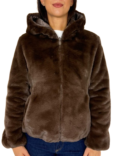 GIUBBINO DONNA MARRONE CORTO IN ECO-PIUMA