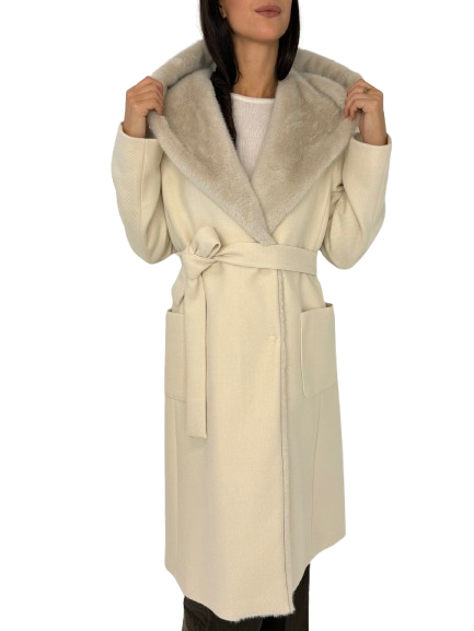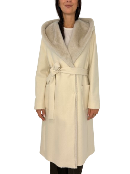 CAPPOTTO DONNA PANNA CON ECO-PELLICCIA