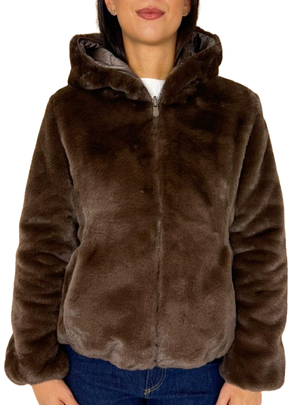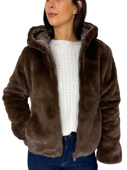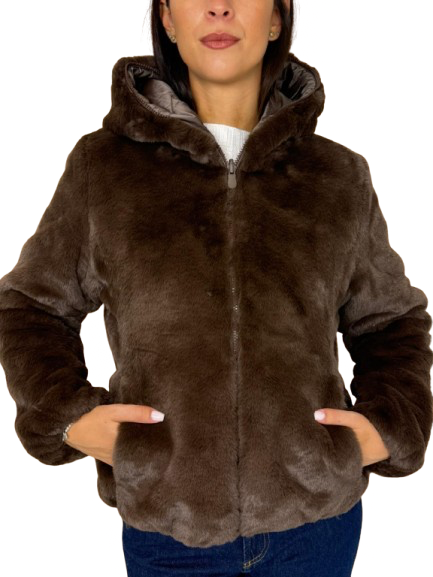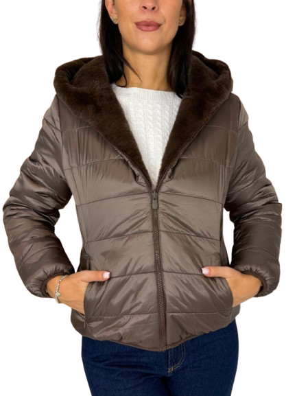 GIUBBOTTO DONNA CORTO MARRONE IN ECO-PIUMA
