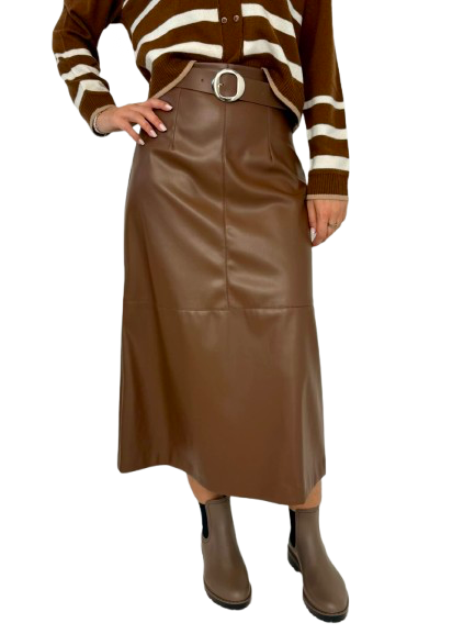 GONNA DONNA MARRONE CON CINTURA IN VITA