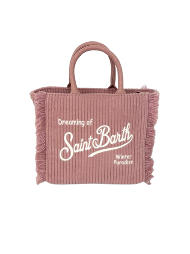 BORSA ROSA VELLUTO CON LOGO BIANCO