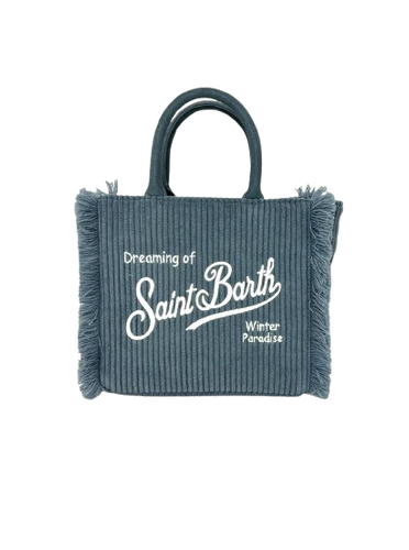 BORSA AZZURRA VELLUTO CON LOGO BIANCO