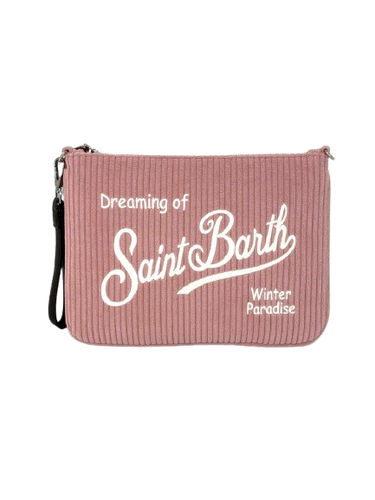 POCHETTE ROSA VELLUTO CON LOGO BIANCO