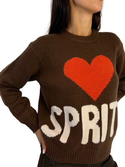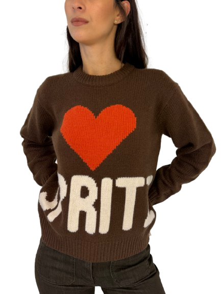 PULLOVER DONNA MARRONE CON LOGO FRONTALE