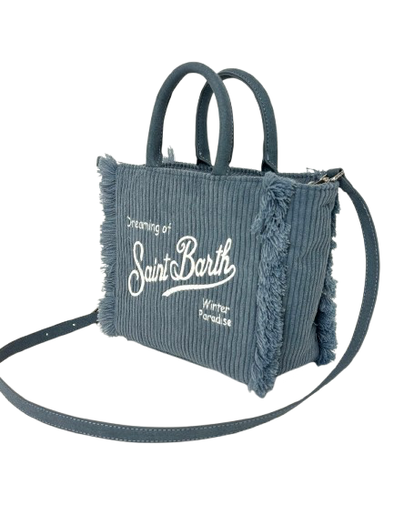 BORSA AZZURRA VELLUTO CON LOGO BIANCO