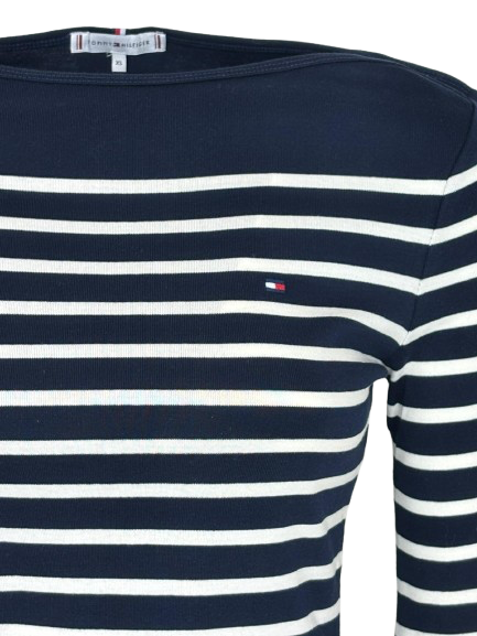 MAGLIA DONNA A RIGHE BIANCO/BLU