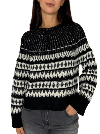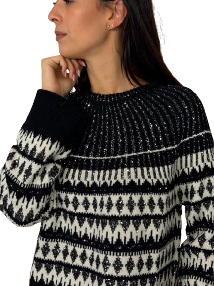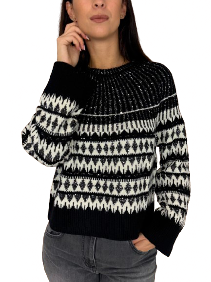 PULLOVER DONNA NERO/BIANCO A FANTASIA