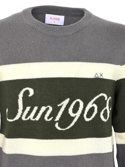 PULLOVER UOMO GRIGIO/VERDE CON LOGO FRONTALE